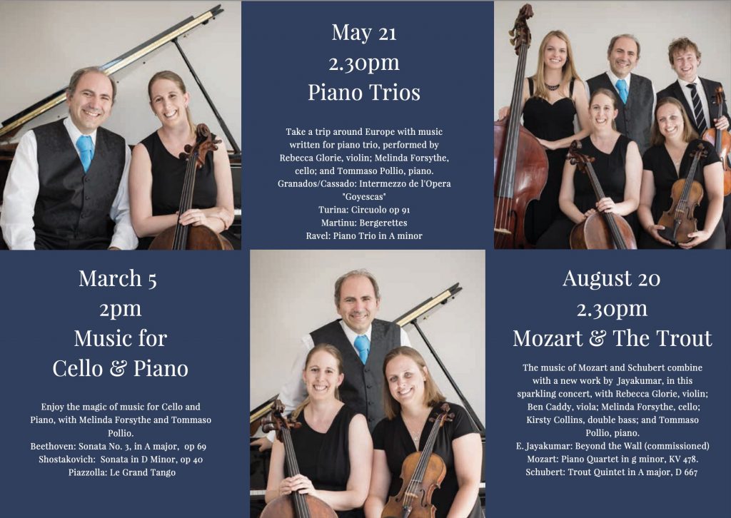 « All Events This event has passed. 2017 Chimera Ensemble Brochure May 21, 2017 @ 8:00 am - August 20, 2017 @ 5:00 pm Event Navigation « Music for cello and piano Piano Trios » + Google Calendar+ iCal Export Details Start: May 21, 2017 @ 8:00 am End: August 20, 2017 @ 5:00 pm Organizer Chimera Ensemble Phone: (08) 9345 1632 Website: www.chimeraensemble.org.au