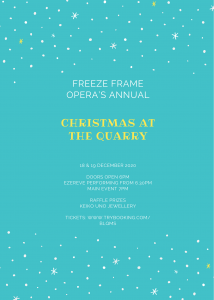 Freeze Frame Opera's Annual Christmas at the Quarry. Doors Open 6 pm EzeReve Performing 6:30 pm Main Event 7 pm Raffle Prizes Keiko Uno Jewellery