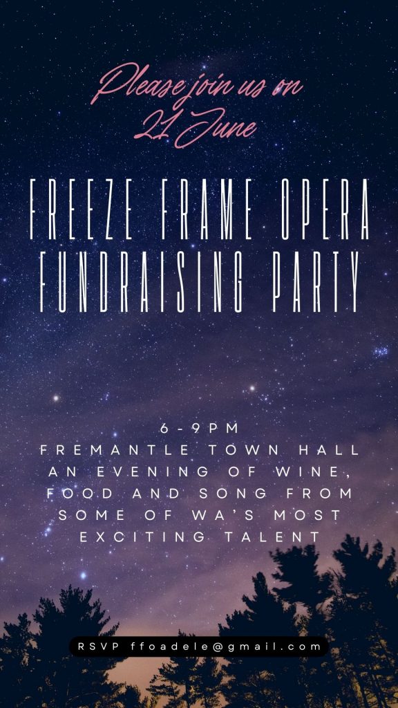 « All Events This event has passed. Freeze Frame Opera Fundraising Party June 21, 2023 @ 6:00 pm - 9:00 pm Event Navigation « Trio Tiramisu Morning Melodies » + Google Calendar+ iCal Export Details Date: June 21, 2023 Time: 6:00 pm - 9:00 pm Organizer Freeze Frame Opera Email: freezeframeopera@gmail.com Website: http://www.freezeframeopera.com/ Venue Fremantle Town Hall Australia + Google Map