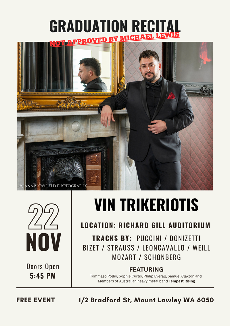 « All Events This event has passed. Graduation Recital: Vin Trikeriotis November 22, 2025 @ 6:00 pm - 7:00 pm Event Navigation « Graduation Recital: Sholto Foss Junior Recital: Bridie King » + Google Calendar+ iCal Export Details Date: November 22, 2025 Time: 6:00 pm - 7:00 pm Organizer WAAPA Website: https://www.waapa.ecu.edu.au/performances-and-events/performances/2023/the-enchanted-pig-a-musical-tale Venue WAAPA