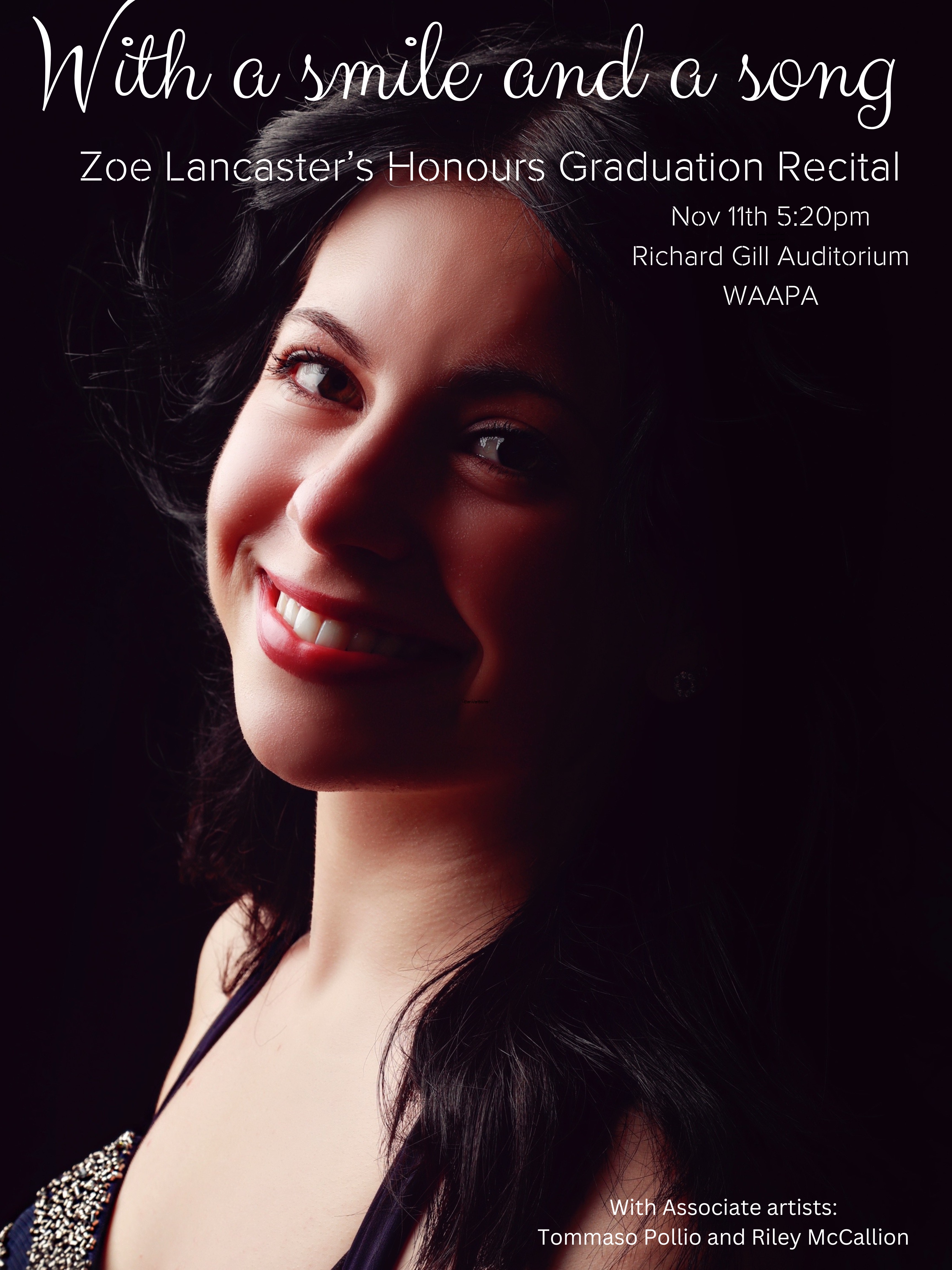 « All Events This event has passed. Graduation Recital: Zoe Lancaster November 11, 2023 @ 5:20 pm - 6:00 pm Event Navigation « Graduation recital: Georgia Mercer Graduation Recital: Audrey Lombardi- Soprano » + Google Calendar+ iCal Export Details Date: November 11, 2023 Time: 5:20 pm - 6:00 pm Venue Richard Gill Auditorium