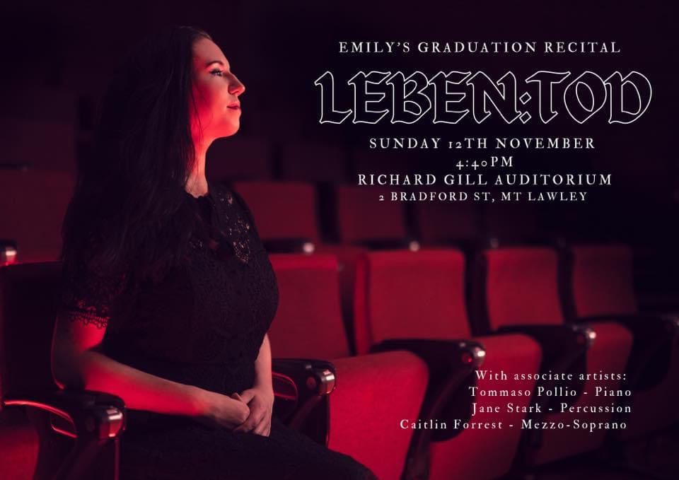 « All Events This event has passed. Leben:Tod Emily Davies Graduation Recital November 12, 2023 @ 4:40 pm - 5:30 pm Event Navigation « Graduation Recital: Sian Bussanich Junior Recital: Annie Fang » + Google Calendar+ iCal Export Details Date: November 12, 2023 Time: 4:40 pm - 5:30 pm Organizer WAAPA Website: https://www.waapa.ecu.edu.au/performances-and-events/performances/2023/the-enchanted-pig-a-musical-tale Venue Richard Gill Auditorium