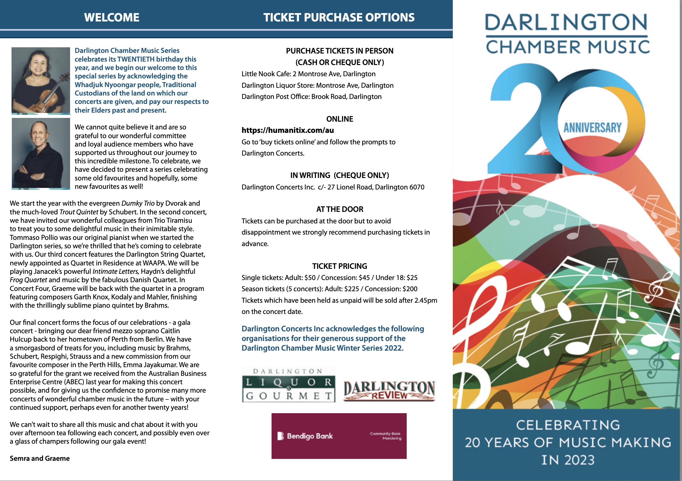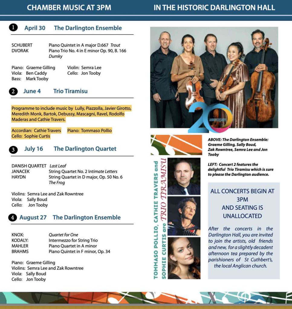 « All Events This event has passed. Trio Tiramisu June 4, 2023 @ 3:00 pm - 5:00 pm Event Navigation « Rapunzel Freeze Frame Opera Fundraising Party » + Google Calendar+ iCal Export Details Date: June 4, 2023 Time: 3:00 pm - 5:00 pm Venue Darlington Hall Montrose Avenue Darlington, WA Australia + Google Map